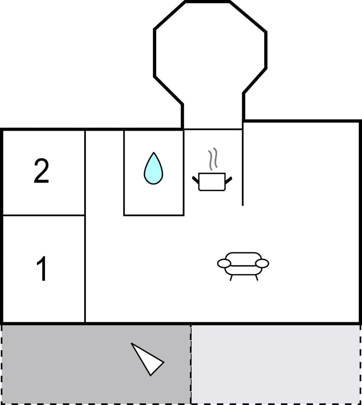 Two-Bedroom Holiday Home. Featuring a private entrance, this holiday home consists of 1 living room, 2 separate bedrooms and 1 bathroom with a shower. The well-fitted kitchen features a stovetop, a refrigerator, kitchenware and a microwave. This holiday home has a tea and coffee maker, a dining area, a TV and outdoor furniture. The unit offers 3 beds.