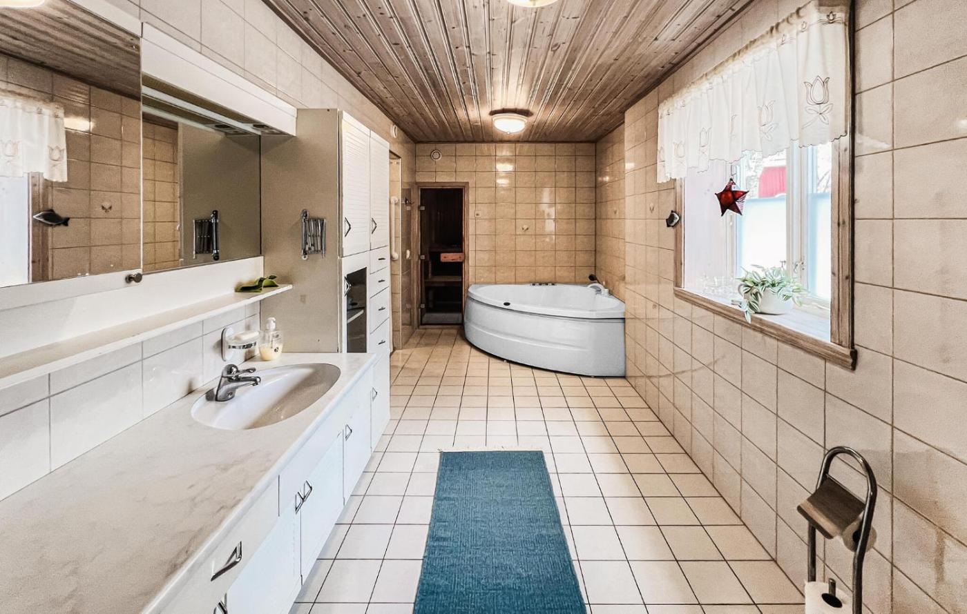 Three-Bedroom Holiday Home. Guests will have a special experience as this holiday home features a hot tub, a sauna and a fireplace. This spacious holiday home consists of 2 living rooms, 3 separate bedrooms and 1 bathroom with a bath and a shower. Guests will find a stovetop, a refrigerator, a dishwasher and kitchenware in the kitchen. The holiday home also offers a barbecue. The holiday home provides a washing machine, a private entrance, a tea and coffee maker, a dining area, as well as a TV. The unit offers 4 beds.
