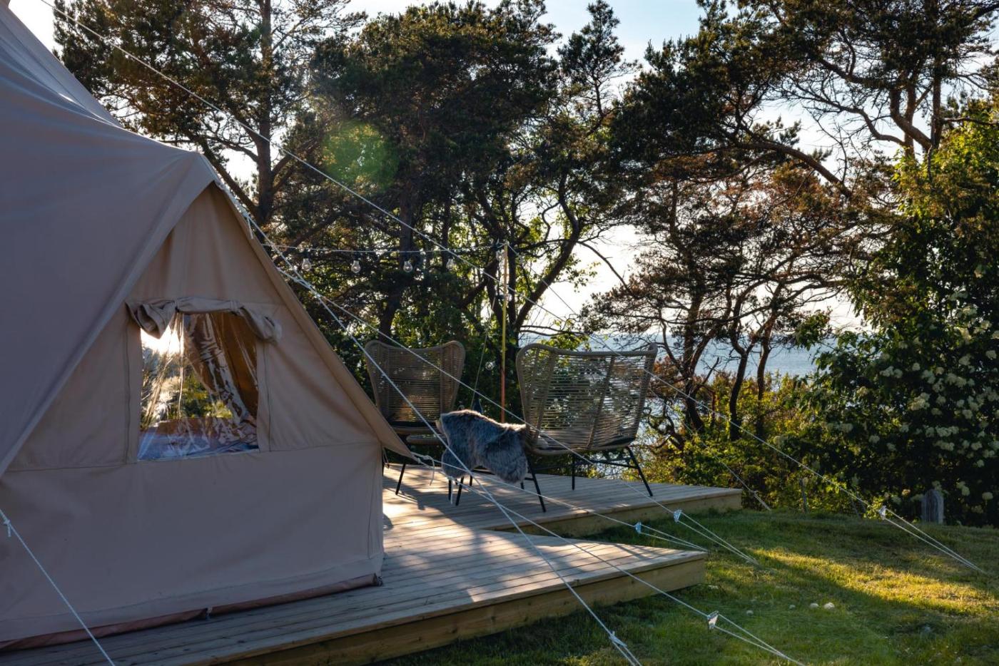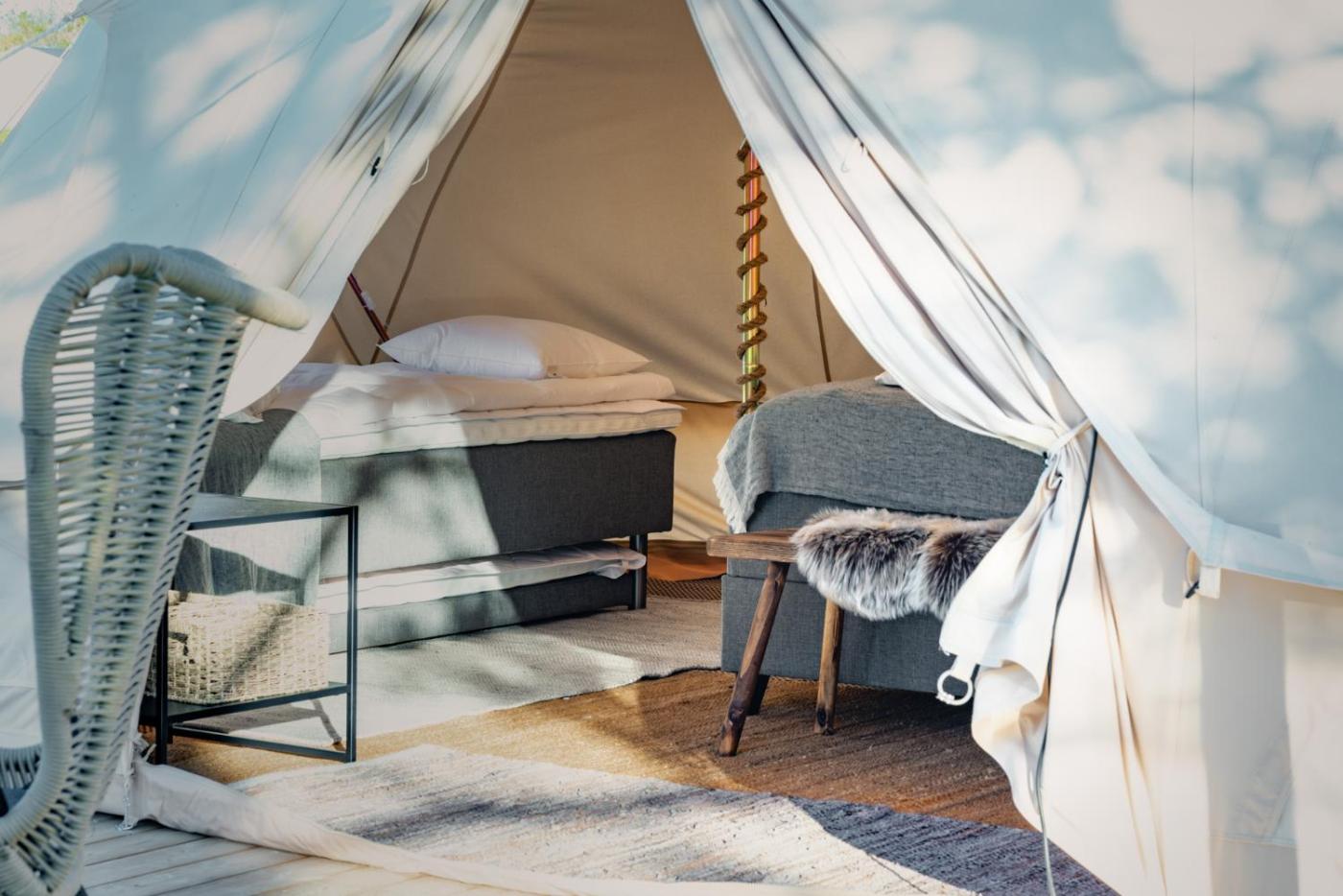 Glamping Tent. The unit has 3 beds. The tent features an external shower and toilets.